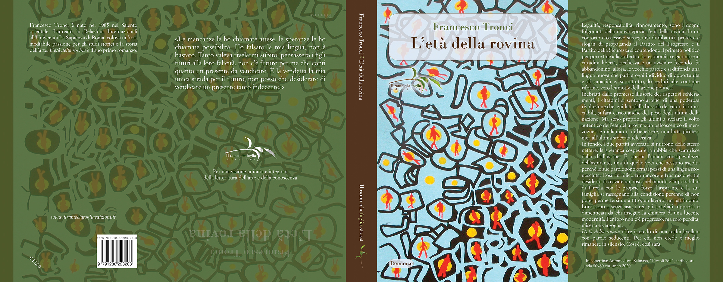 Inebriati dalle promesse illusorie dei rispettivi schieramenti, i cittadini si sentono artefici di una poderosa rivoluzione che, guidata dalla bussola dei valori irrinunciabili, si farà carico anche del peso degli ultimi della nazione. Ma sono proprio gli ultimi a svelare il volto autentico dell’età della rovina: un palcoscenico di menzogneri e millantatori di benessere, una lotta pirotecnica all’ultima stoccata televisiva.