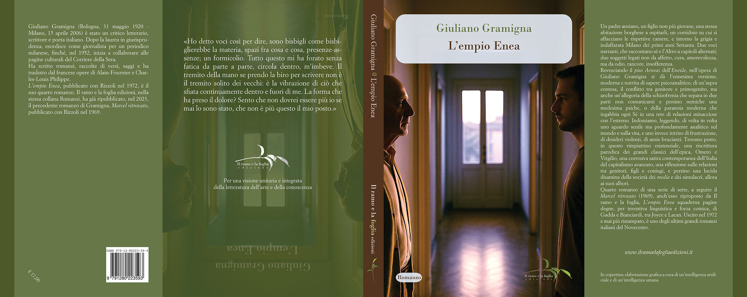 Eneide, nell’opera di Giuliano Gramigna si dà l’ennesima versione, moderna e nutrita di sapere psicoanalitico, di un’aspra contesa, il conflitto tra genitore e primogenito, ma anche un’allegoria della schizofrenia che separa in due parti non comunicanti e persino nemiche una medesima psiche, o della paranoia moderna che ingabbia ogni Sé in una rete di relazioni minacciose con l’esterno. Indossiamo, leggendo, di volta in volta uno sguardo senile ma profondamente analitico sul mondo e sulla vita, e uno invece intriso di frustrazione, di desideri violenti, di ansie brucianti. Trovano posto, in questo rimpiattino esistenziale, una riscrittura parodica dei grandi classici dell’epica, Omero e Virgilio, una corrosiva satira contemporanea dell’Italia del capitalismo avanzato, una riflessione sulle relazioni tra genitori, figli e coniugi, e persino una lucida disamina della società dei media e dei simulacri, allora ai suoi albori.