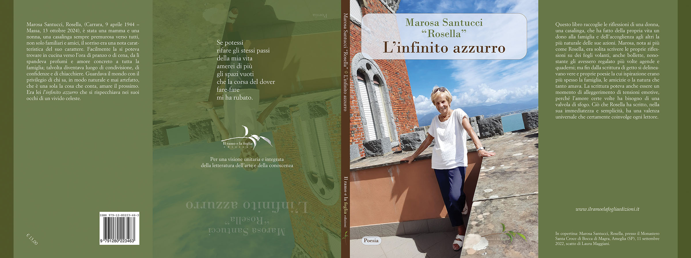 Questo libro raccoglie le riflessioni di una donna, una casalinga, che ha fatto della propria vita un dono alla famiglia e dell’accoglienza agli altri la più naturale delle sue azioni. Marosa, nota ai più come Rosella, era solita scrivere le proprie riflessioni su dei fogli volanti, anche bollette, nonostante gli avessero regalato più volte agende e quaderni; ma fin dalla scrittura di getto si delineavano vere e proprie poesie la cui ispirazione erano più spesso la famiglia, le amicizie o la natura che tanto amava. La scrittura poteva anche essere un momento di alleggerimento di tensioni emotive, perché l’amore certe volte ha bisogno di una valvola di sfogo. Ciò che Rosella ha scritto, nella sua immediatezza e semplicità, ha una valenza universale che certamente coinvolge ogni lettore.