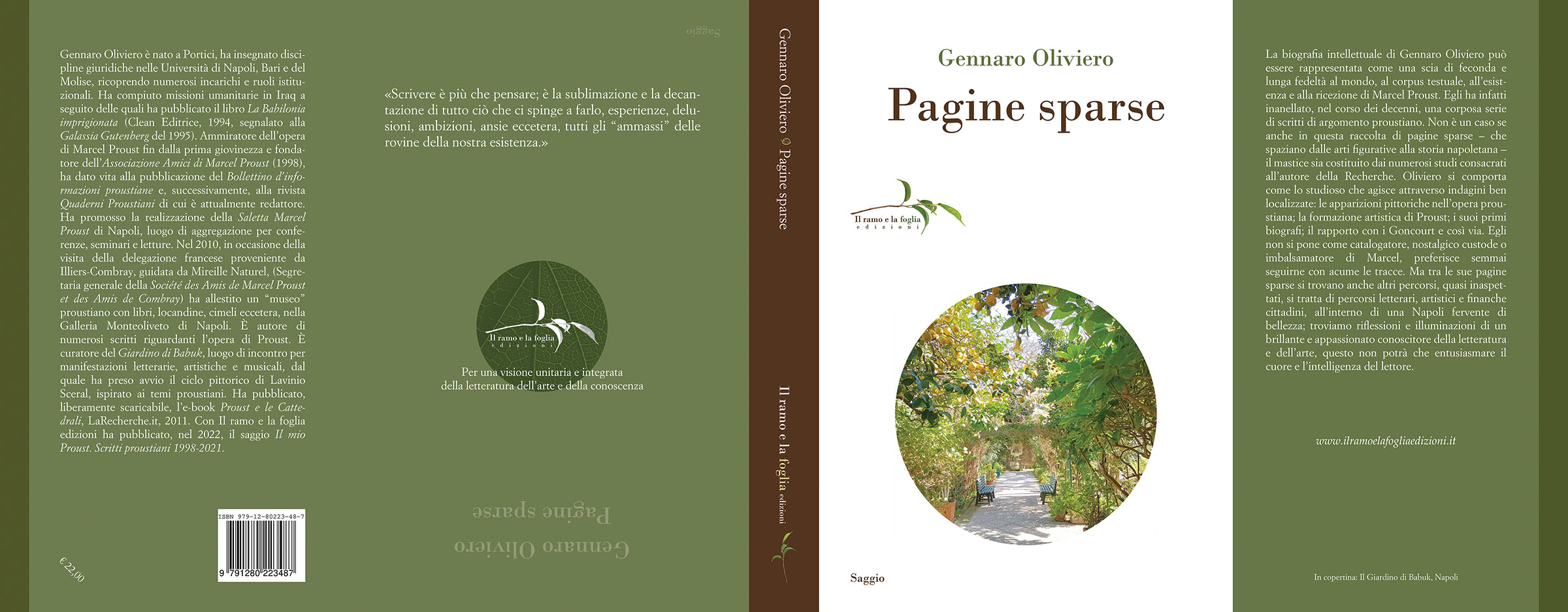 La biografia intellettuale di Gennaro Oliviero può essere rappresentata come una scia di feconda e lunga fedeltà al mondo, al corpus testuale, all’esistenza e alla ricezione di Marcel Proust. Egli ha infatti inanellato, nel corso dei decenni, una corposa serie di scritti di argomento proustiano. Non è un caso se anche in questa raccolta di pagine sparse – che spaziano dalle arti figurative alla storia napoletana – il mastice sia costituito dai numerosi studi consacrati all’autore della Recherche. Oliviero si comporta come lo studioso che agisce attraverso indagini ben localizzate: le apparizioni pittoriche nell’opera proustiana; la formazione artistica di Proust; i suoi primi biografi; il rapporto con i Goncourt e così via. Egli non si pone come catalogatore, nostalgico custode o imbalsamatore di Marcel, preferisce semmai seguirne con acume le tracce. Ma tra le sue pagine sparse si trovano anche altri percorsi, quasi inaspettati, si tratta di percorsi letterari, artistici e finanche cittadini, all’interno di una Napoli fervente di bellezza; troviamo riflessioni e illuminazioni di un brillante e appassionato conoscitore della letteratura e dell’arte, questo non potrà che entusiasmare il cuore e l’intelligenza del lettore.
