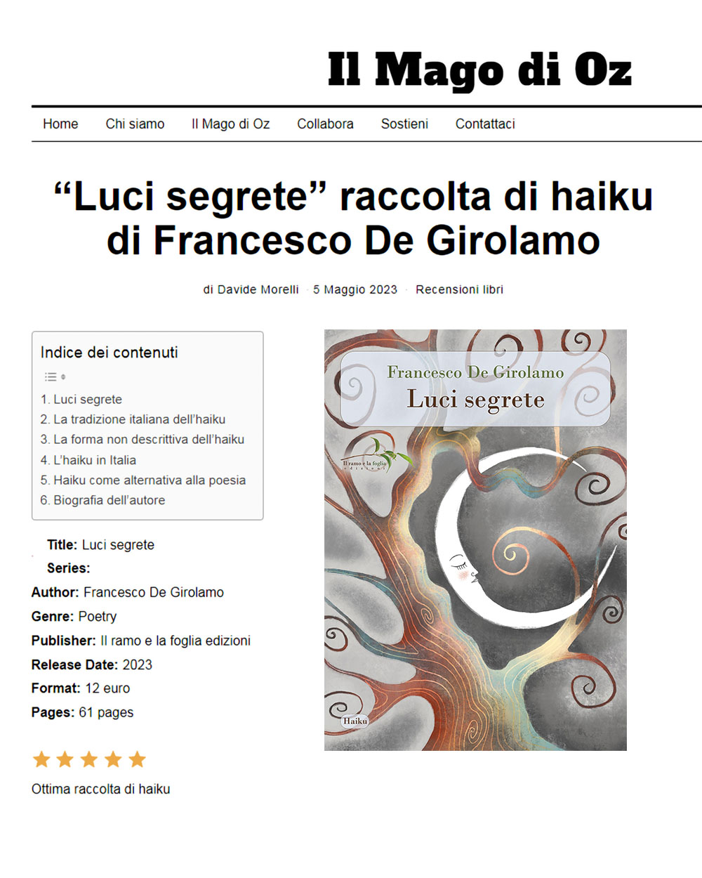 Ringraziamo Davide Morelli e Il Mago di Oz per la recensione di Luci segrete, haiku di Francesco De Girolamo 👇👀
